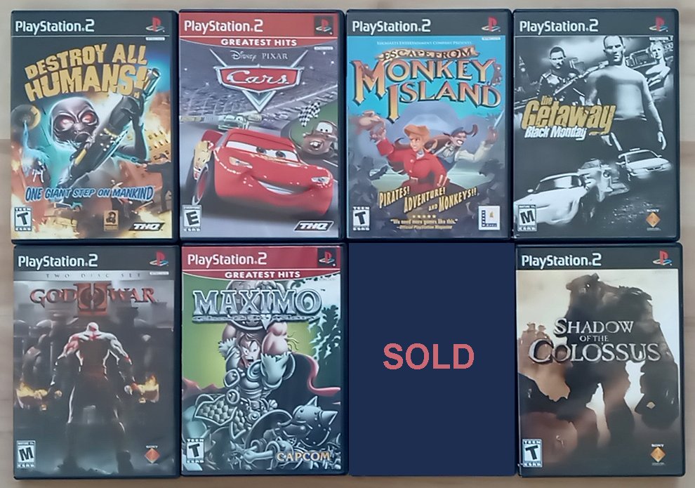 $3 - Destroy All Humans! $3 - Disney Pixar Cars $3 - Escape From Monkey Island $3 - The Getaway - Black Monday $5 - God of War $5 - Maximo $5 - Shadow of the Colossus |