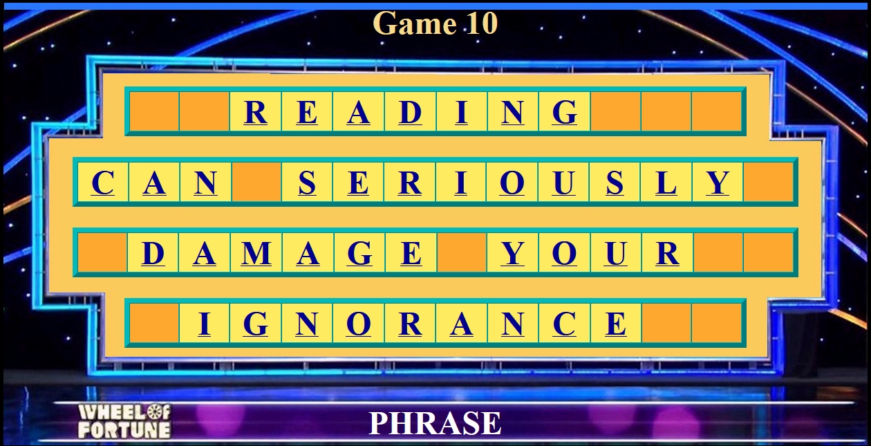 | Game 1 | Game 2 | Game 3 | Game 4 | Game 5 | Game 6 | Game 7 | Game 8 | Game 9 | Game 10 |