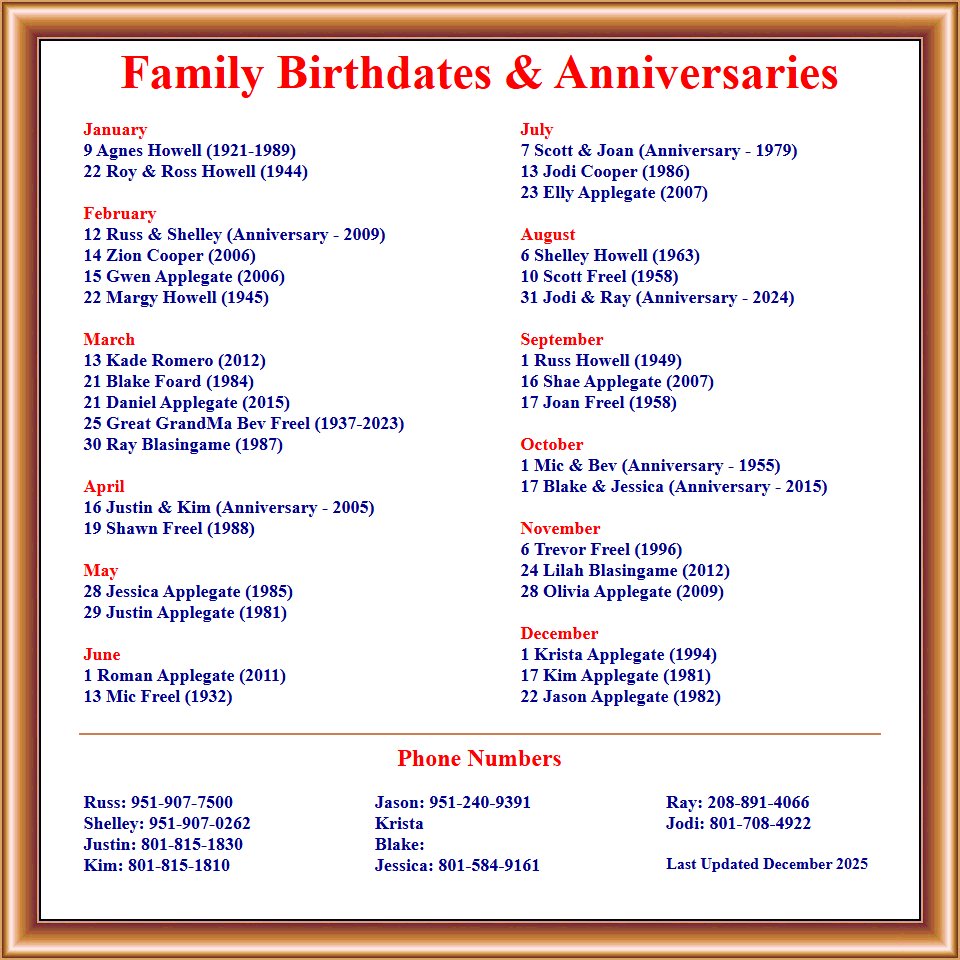 Family Birthdates & Anniversaries Graphic |