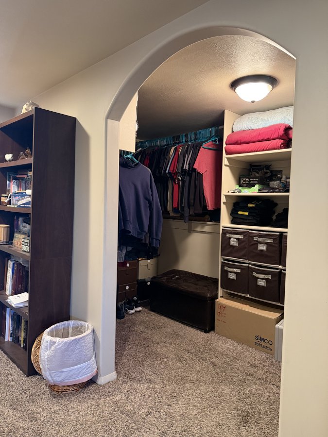 Downstairs - NW BathRoom Dressing Area (12'x13'6") Double-Wide Walk-in Closet With Shelving