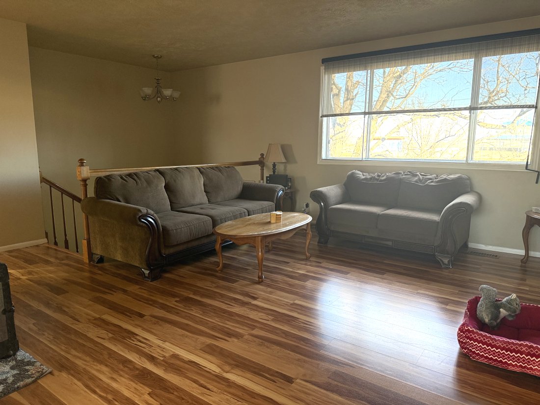 There are four bedrooms, three bathrooms, a wood-burning fireplace, new water heater, new gas furnace, new air conditioner,
